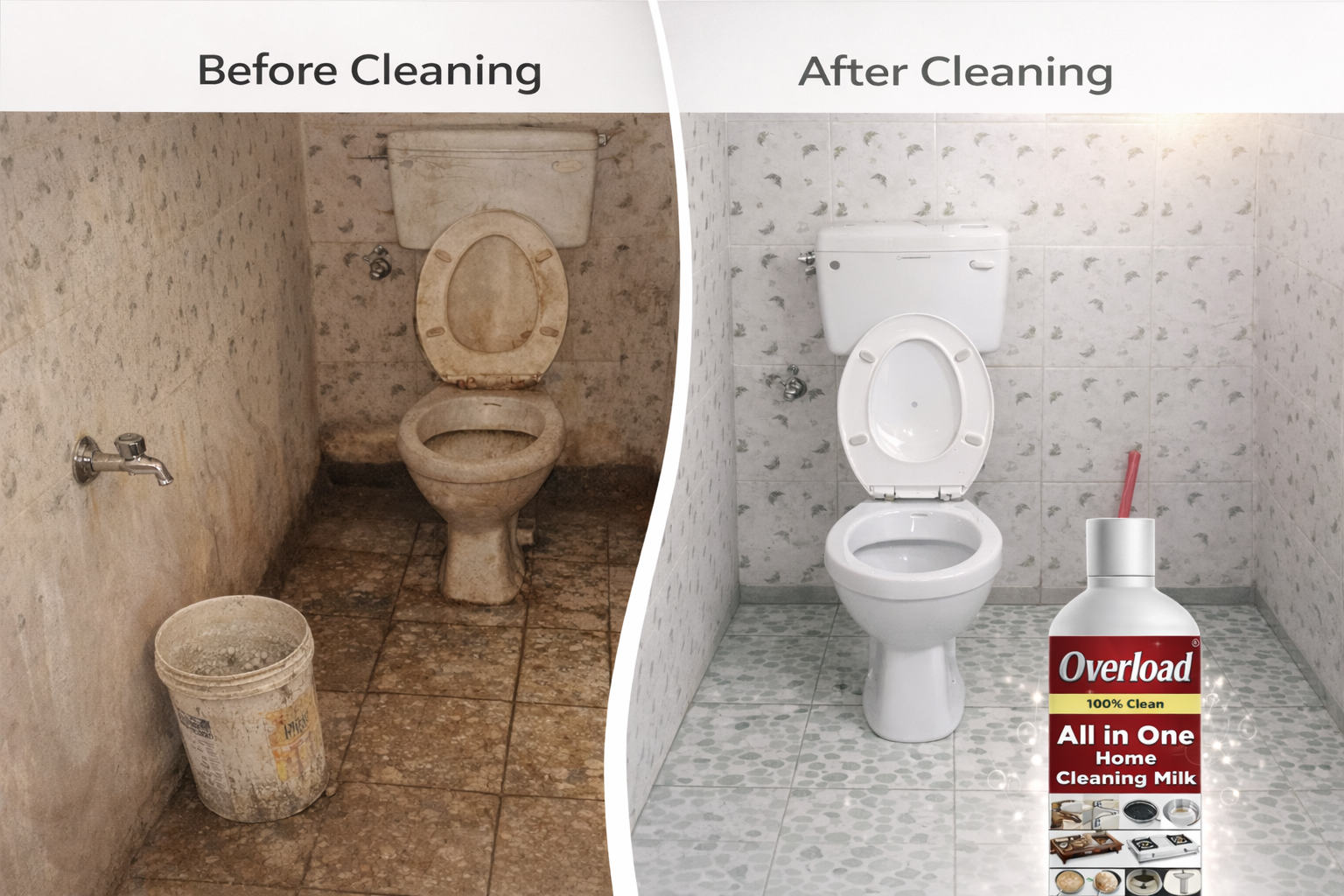 Say goodbye to stubborn grease, oil stains, and dirt with Overload All-in-One Home Cleaning Milk.